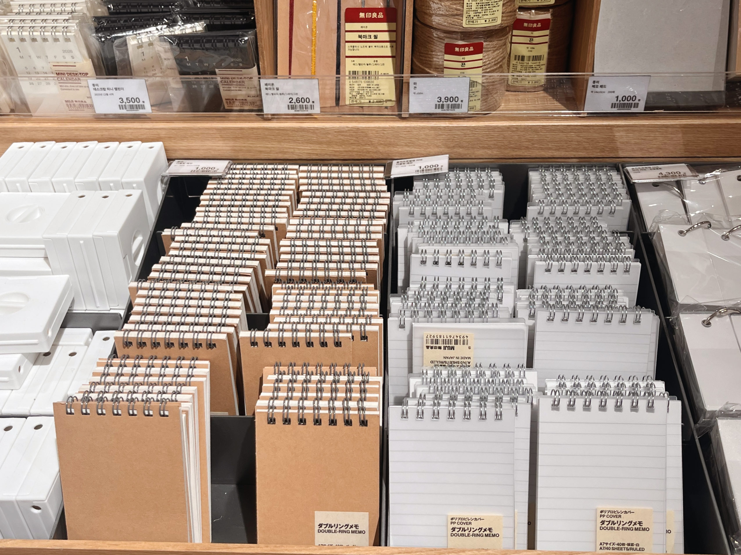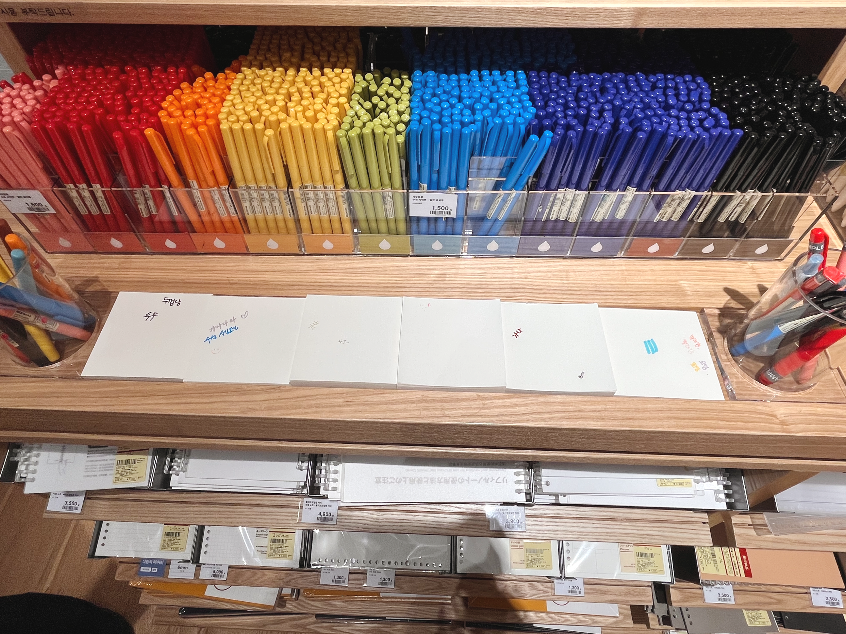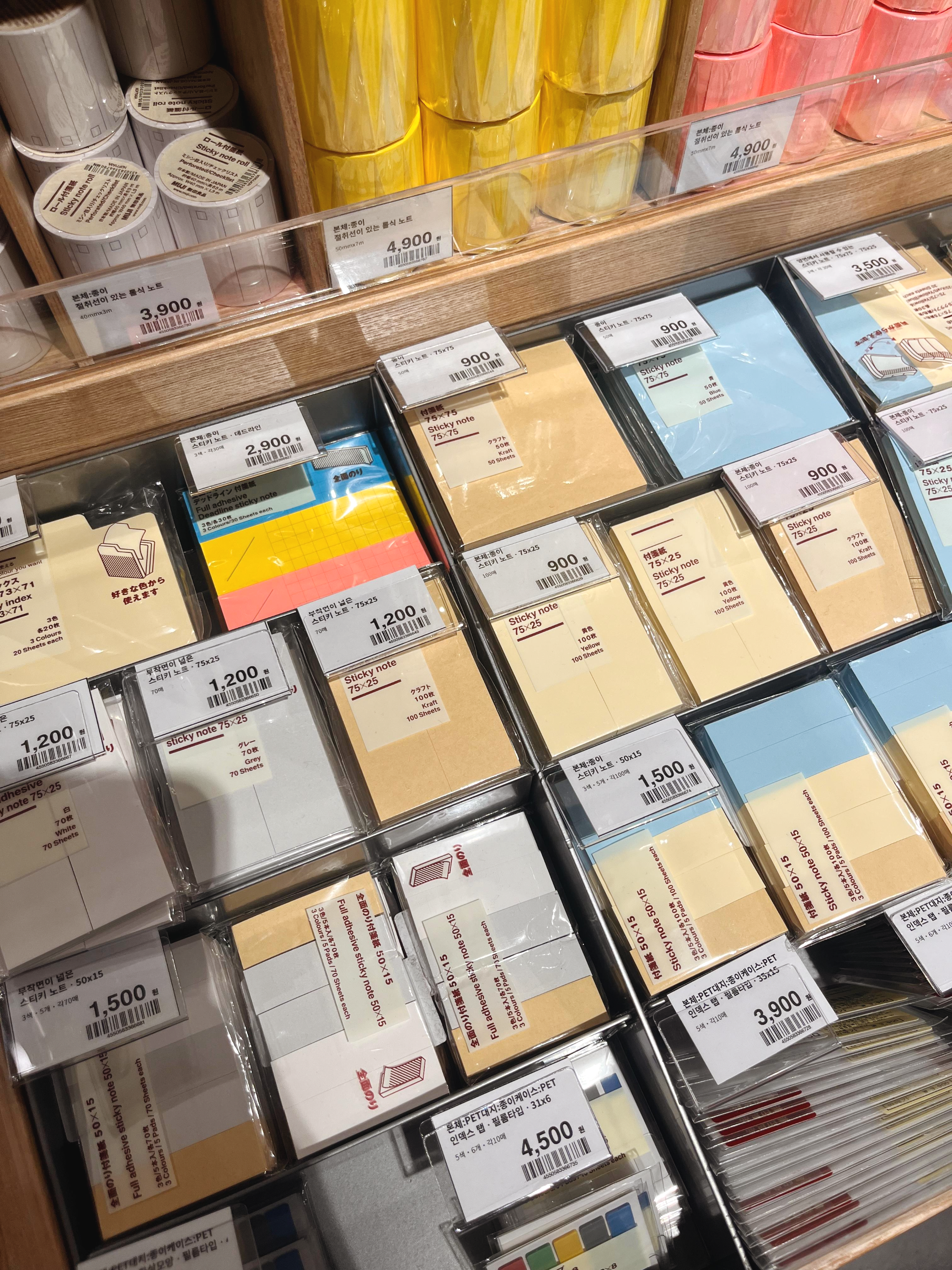 무지의 문구 코너에 가면 종류별로 다양한 문구들이 착착착 정리되어 있다. 재고도 무척 여유있게 구비되어 있어 보기만해도 마음 한가득 넉넉하고 편안해진다.